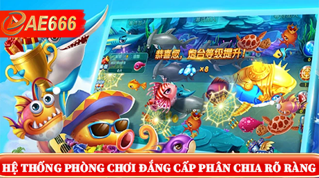 Tại AE666, hệ thống phòng chơi của Jili All Star Fishing được thiết kế khoa học với 3 cấp độ đấu trường đa dạng, phù hợp với mọi trình độ và chiến lược của người chơi: